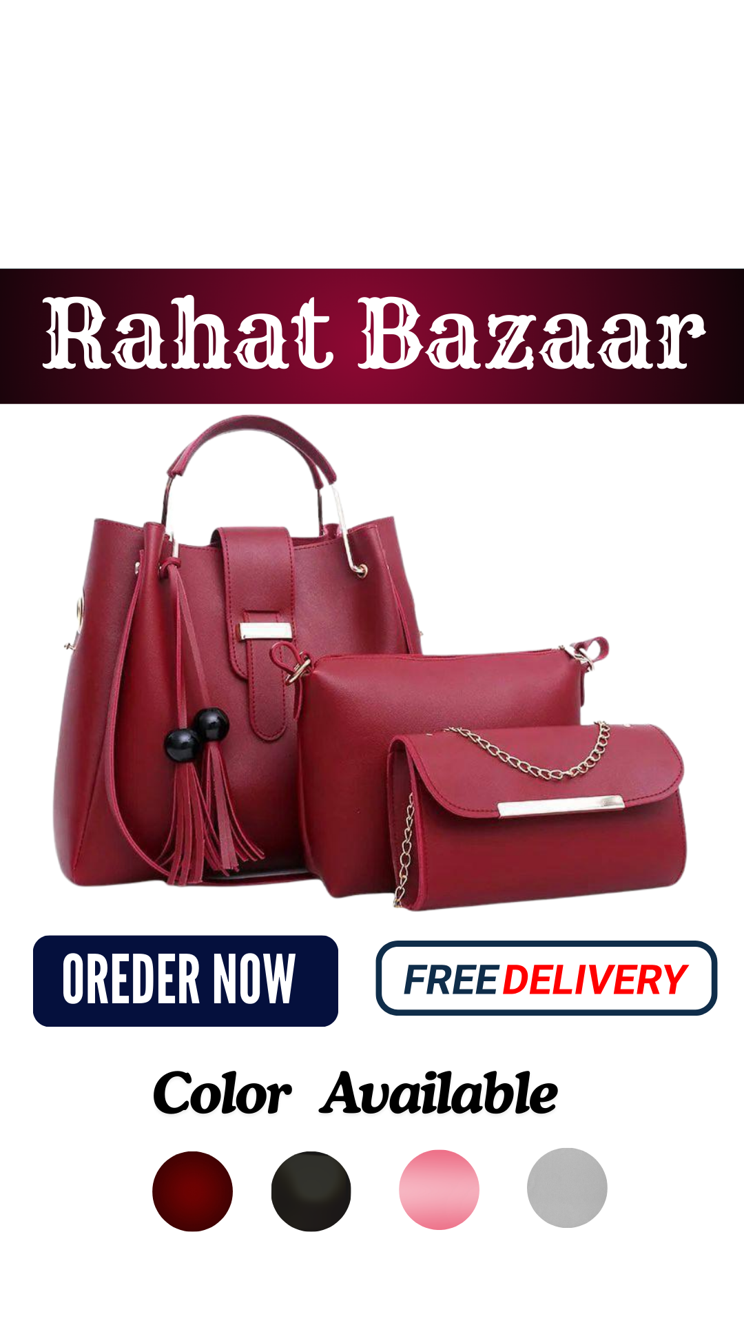 Stylish Pink Leather Hand Bag Set - 3 Pcs for Girls